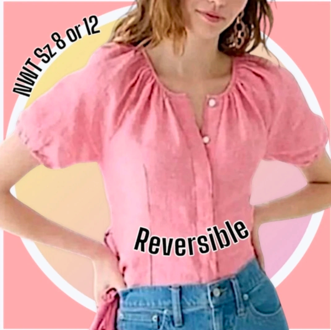 NWT Sz 8 J Crew Reversible V Back Linen Scoop Neck Top π