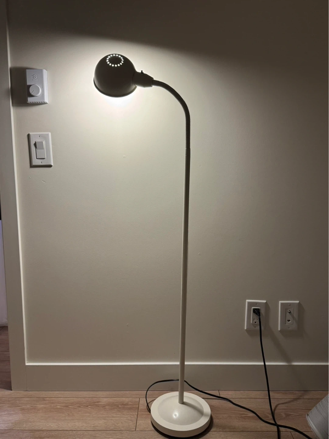 This floor lamp has a flexible gooseneck for easy positioning.
