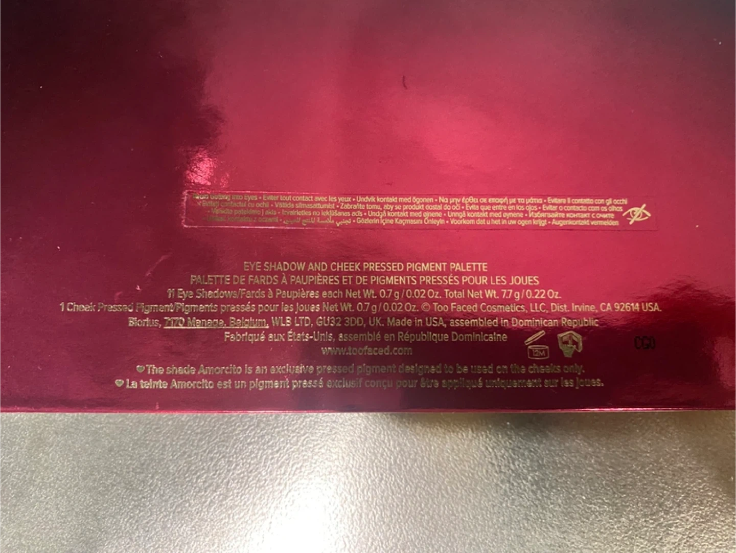 Never used Too Faced Mariale Amor Caliente Eyeshadow & Cheek Pressed Pigment Palette. It includes 11 eyeshadows and 1 pressed pigment designed for cheeks.