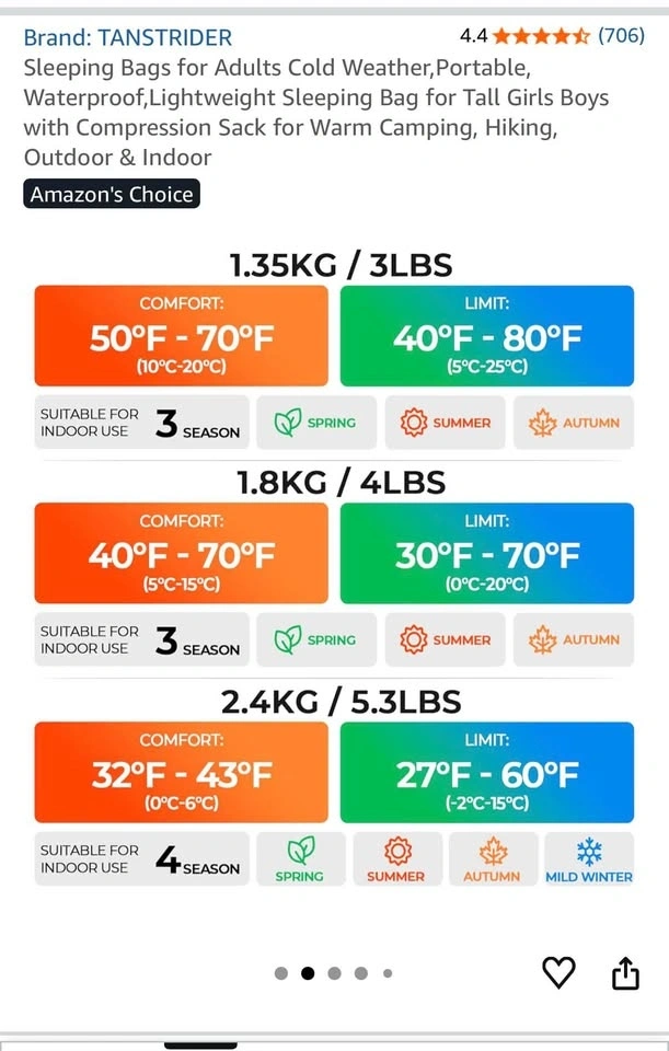 Buy & SellSleeping Bags - 2 AvailableSleeping Bags - 2 Available$37Selling two sleeping bags, used only once. One is rated for 5–15°C ($40) and the other for 10–20°C ($35). Both can be purchased together for $70.WHERE TO MEETCheck LocationView MapSELLERverifiedLikithOshawa Centre600 reviews0 chats·1 favorites·29 viewsSEND CHAT TO SELLERHi Likith! I’m interested in your listing.Hi Likith! I’m interested in your listing.Get the Karrot app to chatSign In to chat