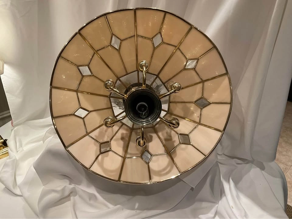 Beautiful Tiffany Style Lamp with 6 Arms & 1 Centre Light. Great Condition. Arm Extension. Width 22”, Top to Bottom 18 1/2”. Smoke & Pet Free Home. Cash Only - Richmond Hill (Bathurst & King Rd).