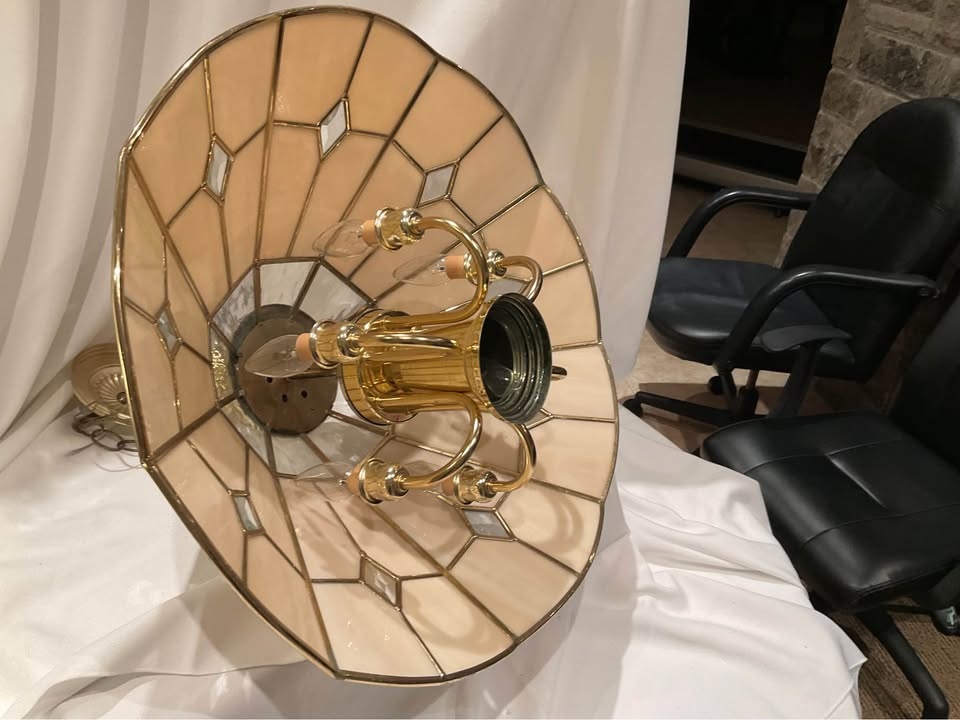 Beautiful Tiffany Style Lamp with 6 Arms & 1 Centre Light. Great Condition. Arm Extension. Width 22”, Top to Bottom 18 1/2”. Smoke & Pet Free Home. Cash Only - Richmond Hill (Bathurst & King Rd).