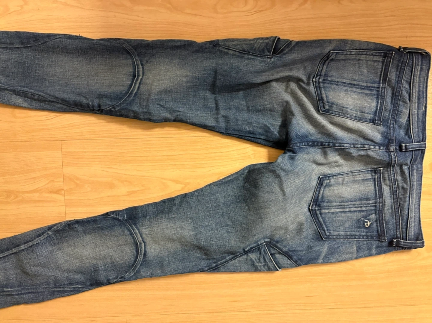 These Rag & Bone jeans have a distressed blue wash and moto-inspired detailing. They feature zippered pockets on the front and a classic five-pocket design. Denim construction.