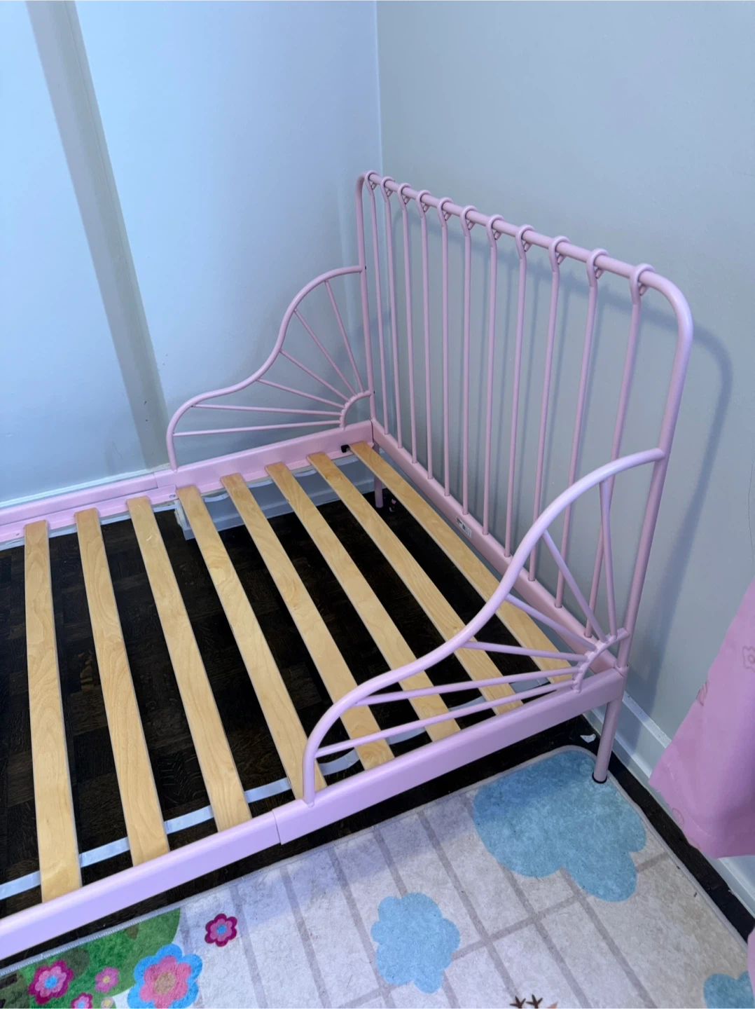 Pink Metal Twin Bed Frame with Slats