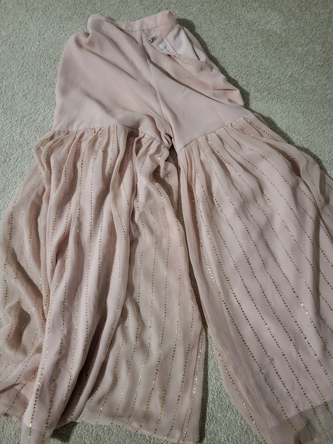 Selling a beautiful pink Salwar Kameez suit. The fabric is soft and flowy, perfect for a special occasion. It features a lovely pattern with square accents.
