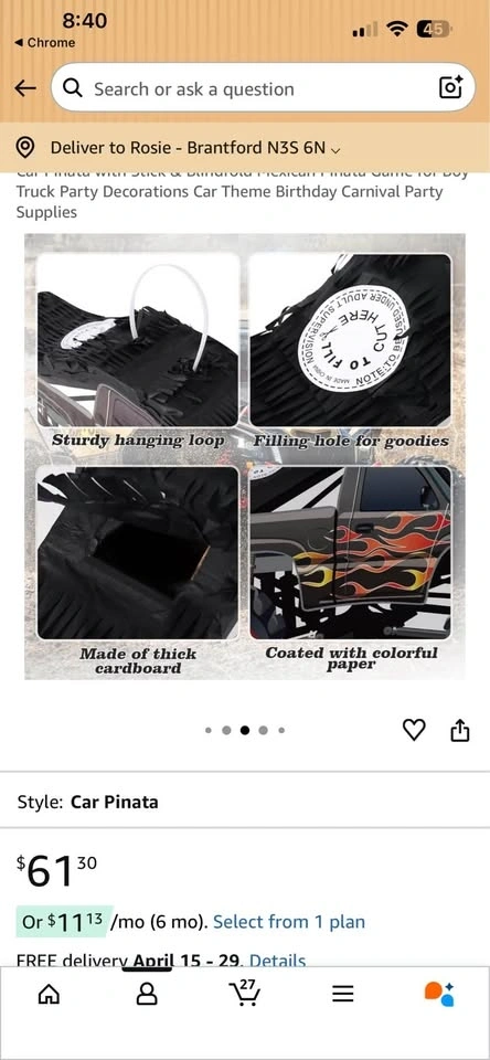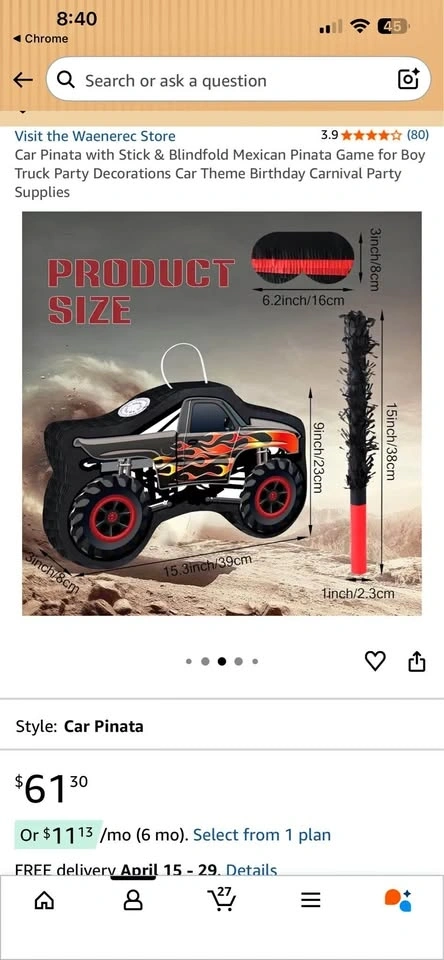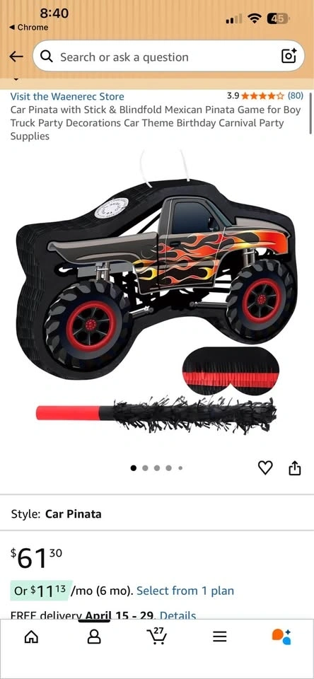 Buy & SellTruck piñata with stick and eye coverTruck piñata with stick and eye cover$40Brand new in box.WHERE TO MEETCheck LocationView MapSELLERRosieEcho Place211 review0 chats·0 favorites·0 viewsSEND CHAT TO SELLERHi Rosie! I’m interested in your listing.Hi Rosie! I’m interested in your listing.Get the Karrot app to chatSign In to chat