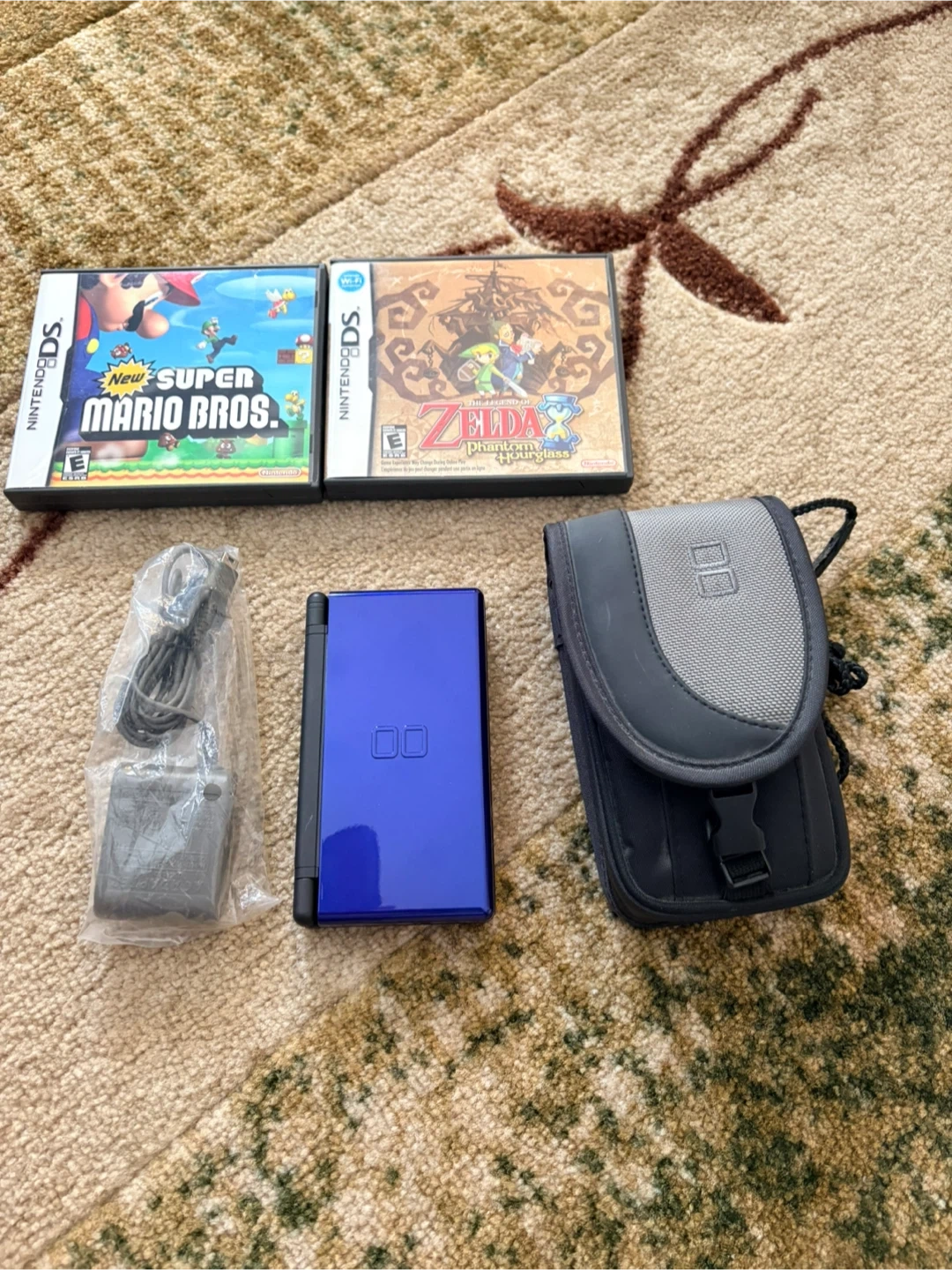 Selling a blue Nintendo DS Lite console. It comes with a carrying case, stylus, and two games: The Legend of Zelda: Phantom Hourglass and New Super Mario Bros. This bundle is ready for gaming on the go! Cash only