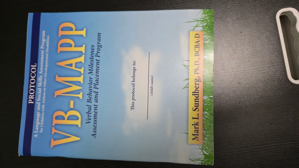 Selling a copy of the VB-MAPP (Verbal Behavior Milestones Assessment and Placement Program) book. It's a guide and protocol for language and social skills assessment for children with autism or other developmental disabilities. Authored by Mark L. Sundberg, Ph.D., BCBA-D. Second Edition