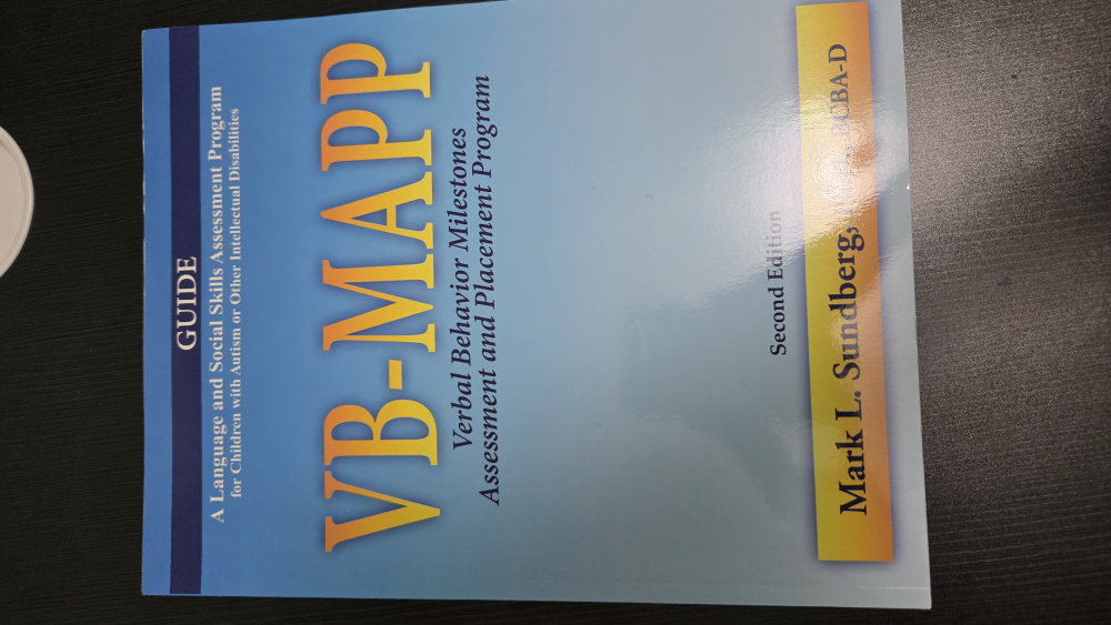 Selling a copy of the VB-MAPP (Verbal Behavior Milestones Assessment and Placement Program) book. It's a guide and protocol for language and social skills assessment for children with autism or other developmental disabilities. Authored by Mark L. Sundberg, Ph.D., BCBA-D. Second Edition