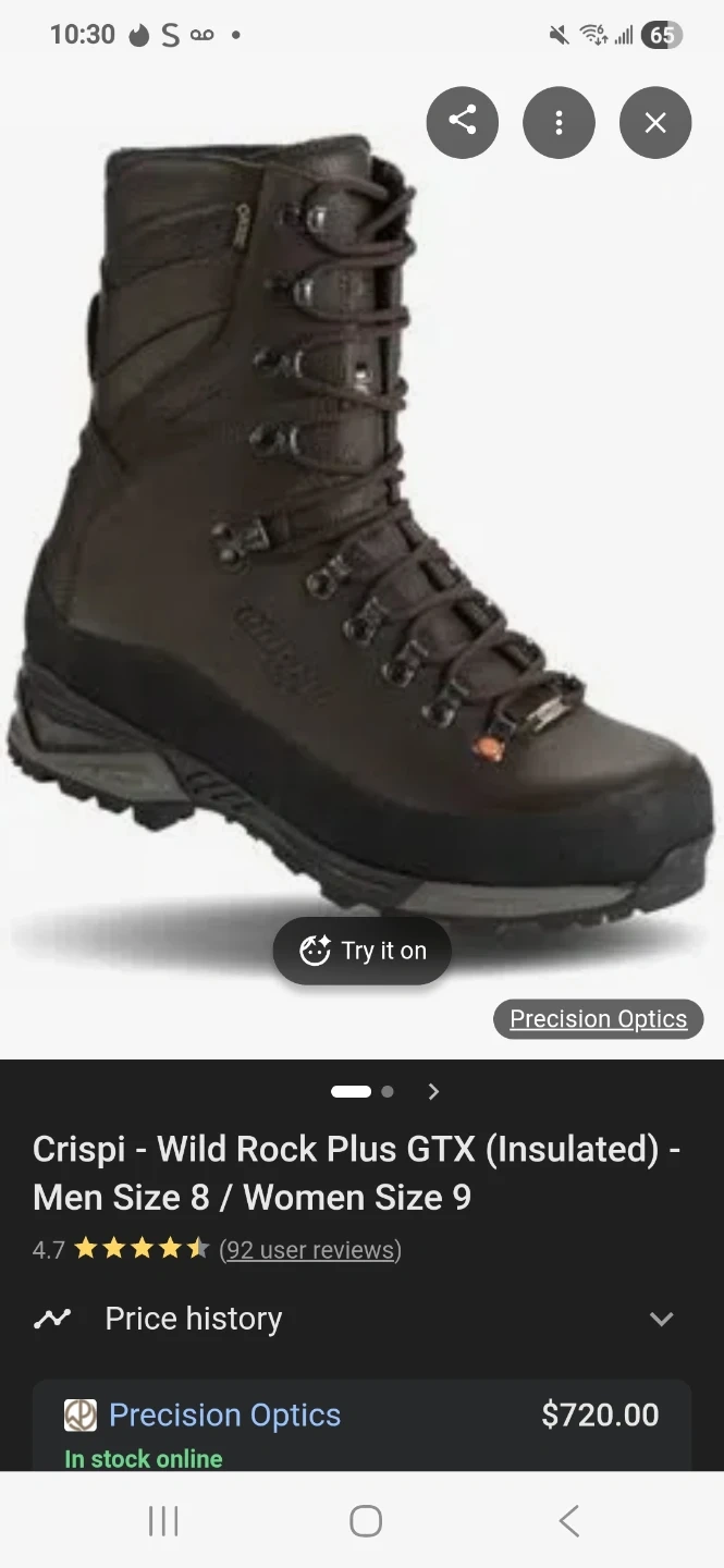 1 / 11 / 1Buy & SellCrispi Wild Rock Plus GTX Insulated BootsCrispi Wild Rock Plus GTX Insulated Boots$360Insulated hiking boots by Crispi. Men's size 12.5 or Women's size 11.5 Features Gore-Tex (GTX) waterproofing. Designed for rugged outdoor use.ConditionNewWHERE TO MEETCheck LocationView MapSELLERverifiedjeffreyVanier670 reviews0 chats·0 favorites·7 viewsSEND CHAT TO SELLERHi jeffrey! I’m interested in your listing.Hi jeffrey! I’m interested in your listing.Get the Karrot app to chatSign In to chat