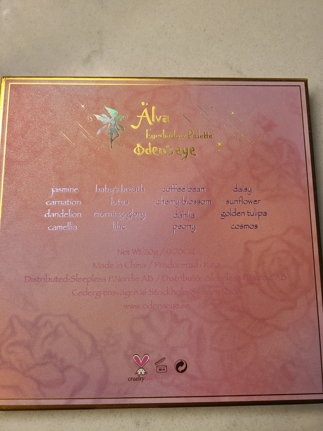 Alva Eyeshadow Palette by Öden's Eye contains 16 shades. Net weight 20g / 0.70oz.