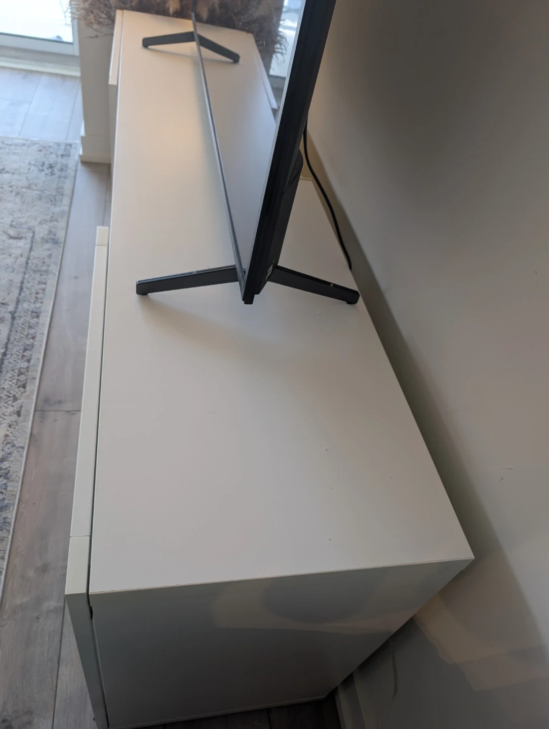 Selling TV unit in white! It's in great shape, lots of storage space and ready for a new living room. Perfect for organizing your media, secret storage space and displaying your favourite items