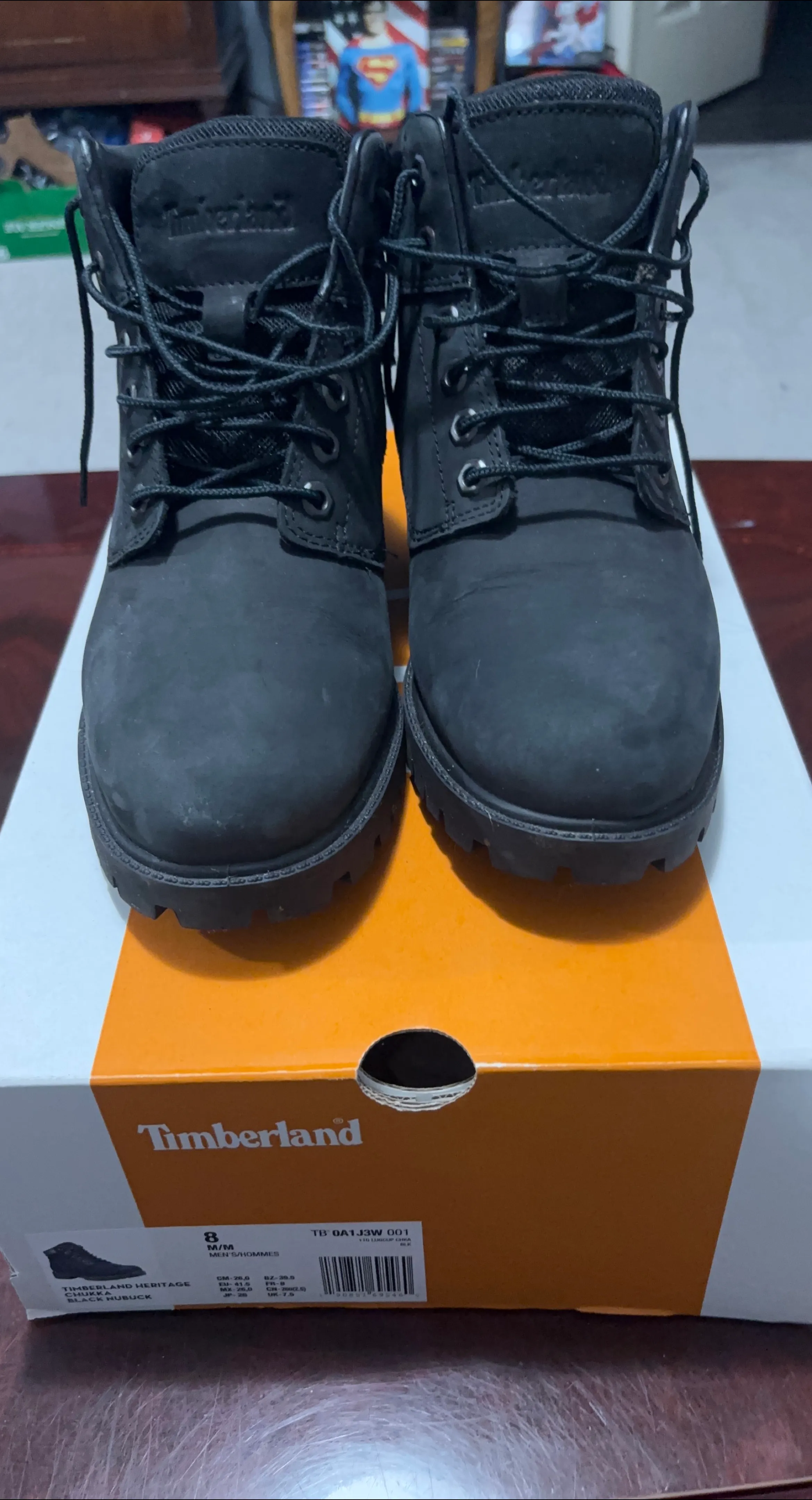 Selling a pair of Timberland Heritage Chukka boots in black nubuck, size 8 (M/M). They're in great shape and come with the original box. Perfect for everyday wear!