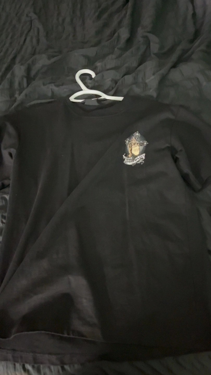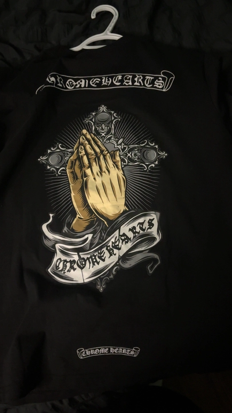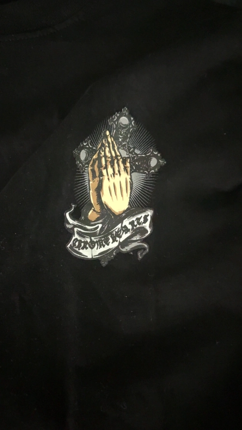 Selling a Chrome Hearts black t-shirt. The shirt features a unique design on the front and back. It's in great condition and ready for a new home
