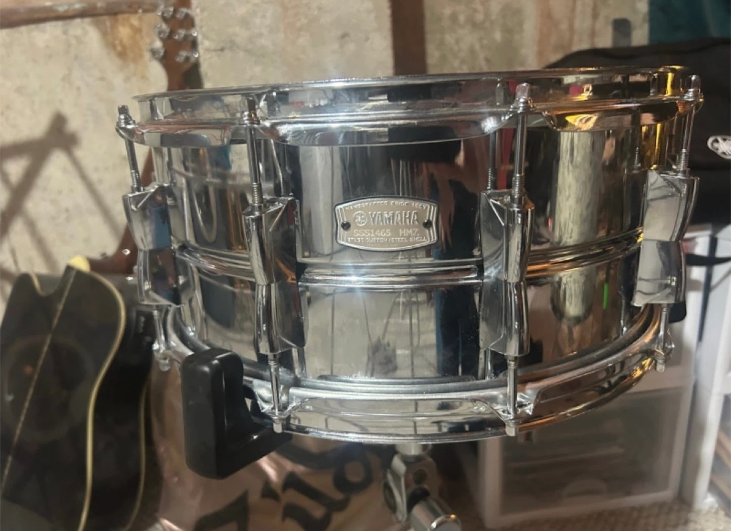 This is a Yamaha Stage Custom snare drum. It's a steel shell model. The drum comes with a Remo Ambassador head. It's a great snare for any drummer looking for a classic sound!