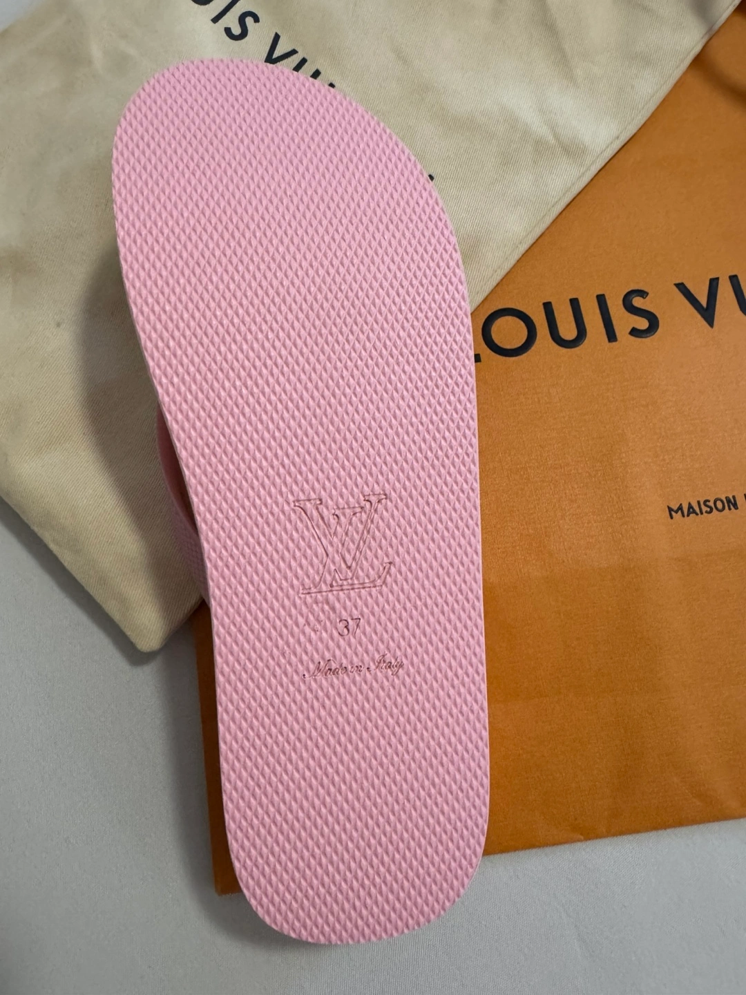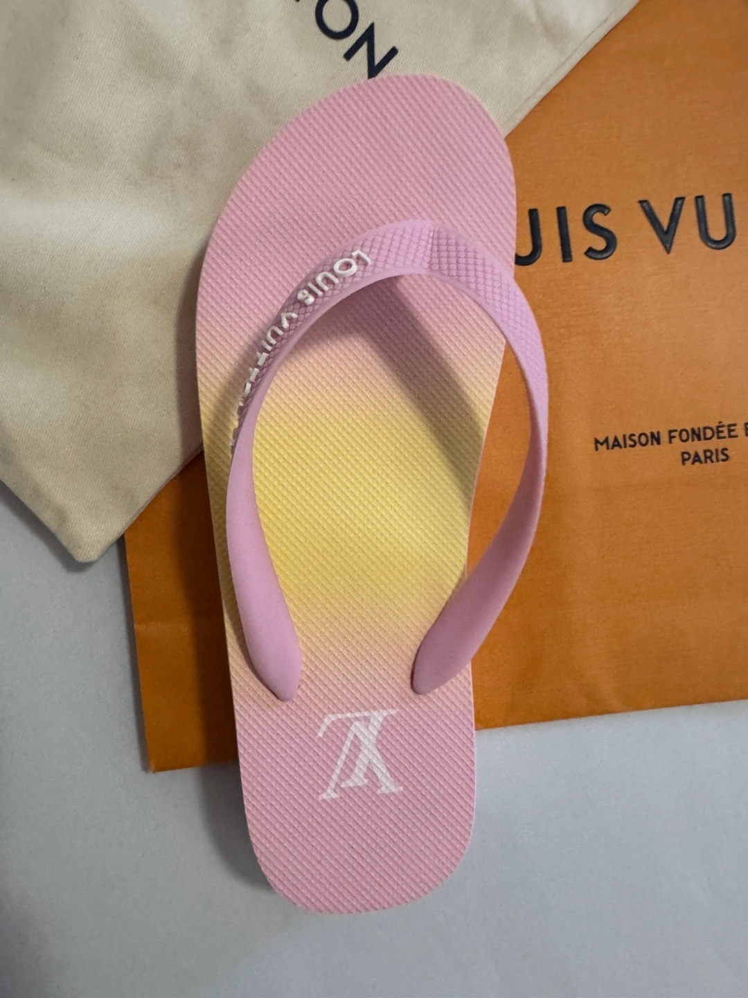 Selling a pair of Louis Vuitton Sunset flip flops in a beautiful pink ombre color. They are a size 37. Comes with the original box and dust bag!