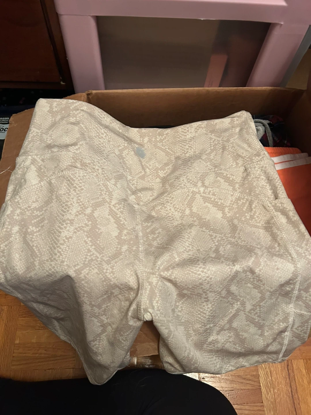These are Sommer Ray bike shorts with a snake print design. They have pockets on the sides. Perfect for workouts or casual wear! Butt lift and squat proof 😉