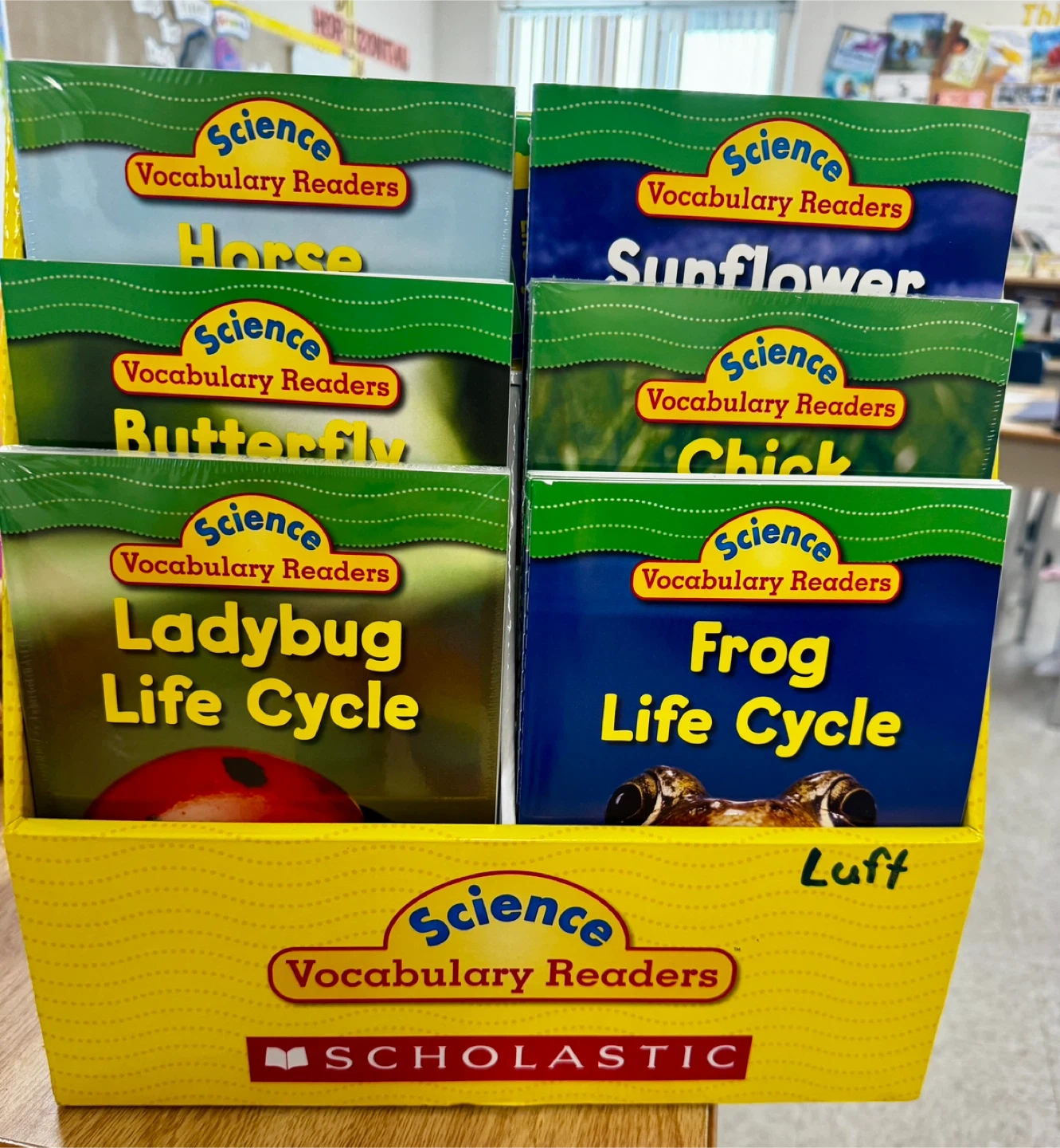 This set includes Scholastic Science Vocabulary Readers books. Life cycle Titles included are Horse, Sunflower, Butterfly, Chick, Ladybug, and Frog. These books are great for young learners to build their science vocabulary.