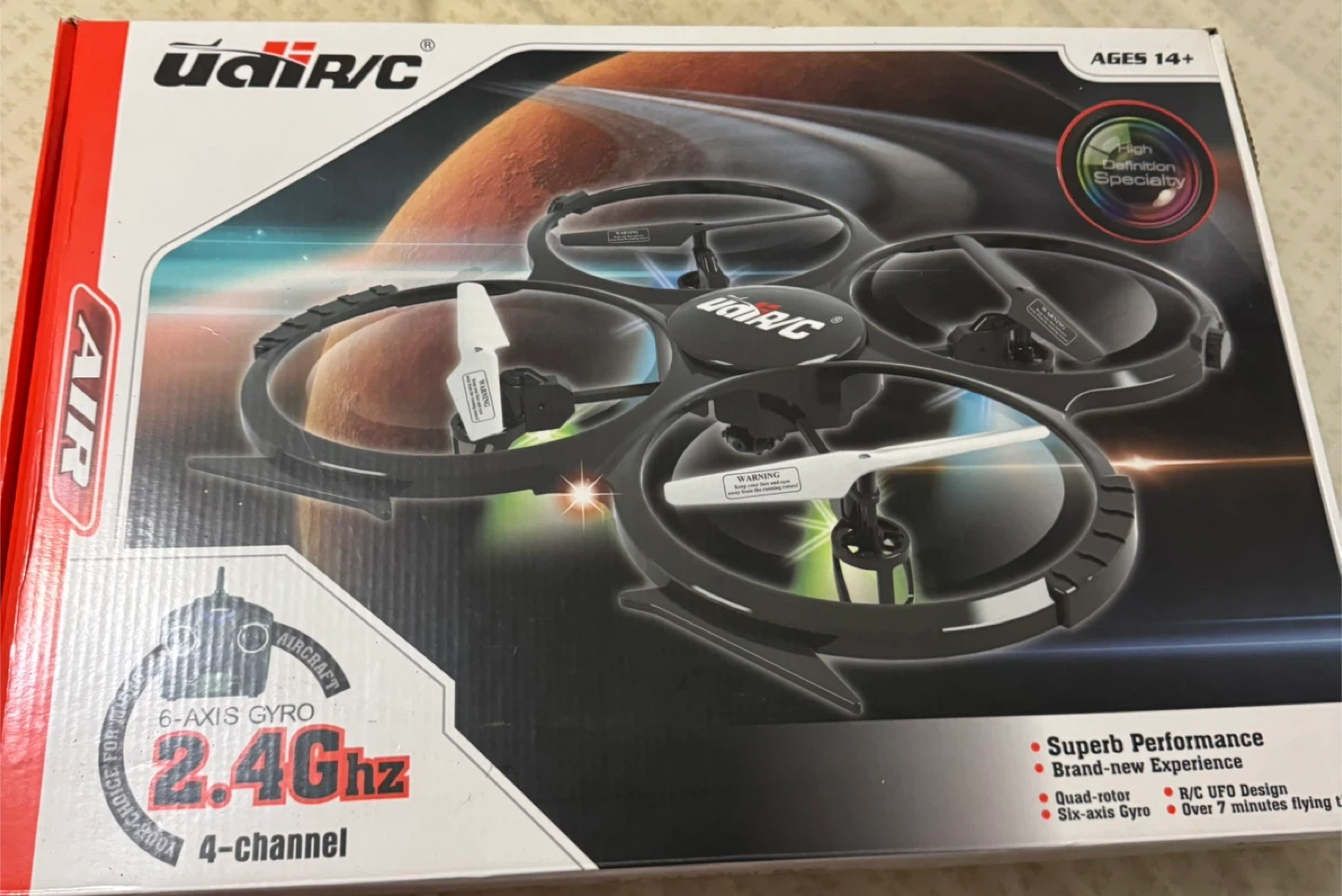 10Selling a UDIR/C U818A AIR drone that's in excellent condition! It comes with the original box and all the accessories shown on the box, including the remote control, battery, and charger. This drone features a 6-axis gyro, 2.4GHz 4-channel control, and is capable of 360° eversion. It's designed for ages 14+ and offers superb performance for a brand-new experience