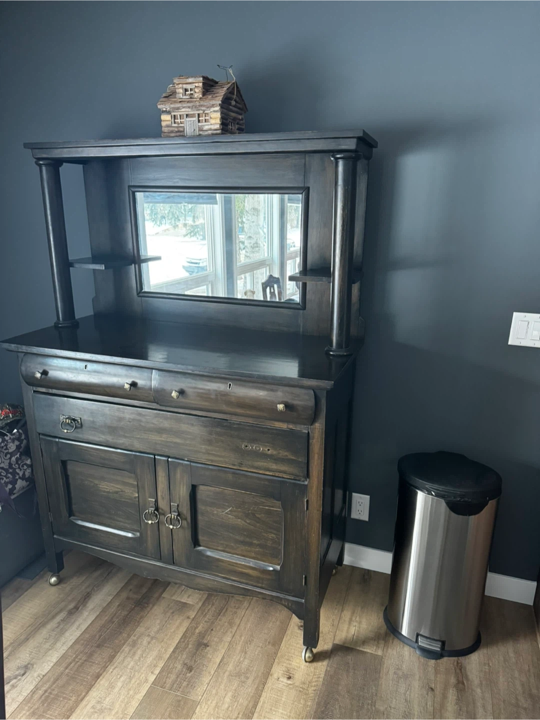 Antique Dark Wood Sideboard with Mirror