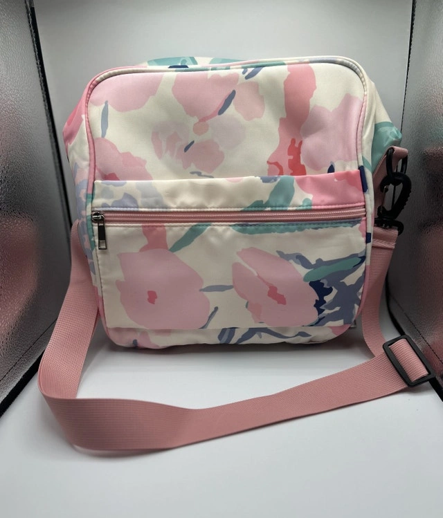 Brighten up your lunch routine with this beautiful, multi-colored floral insulated lunch bag! Perfect for work, school, picnics, or travel. The eye-catching watercolor-style floral print features lovely shades of pink, teal, and navy blue.
