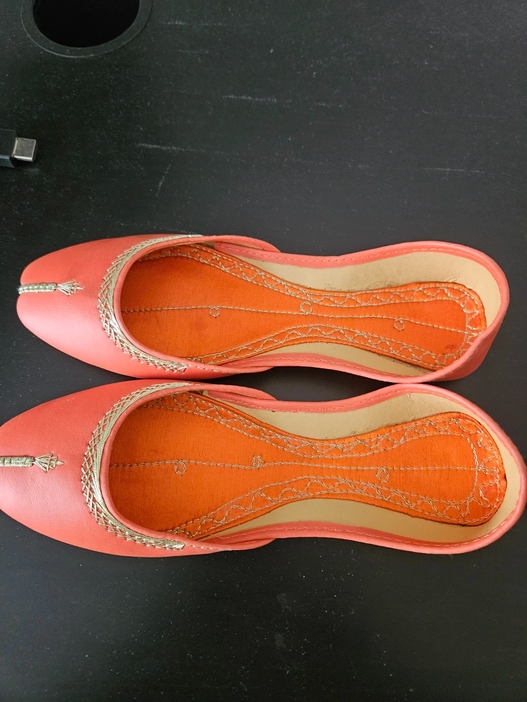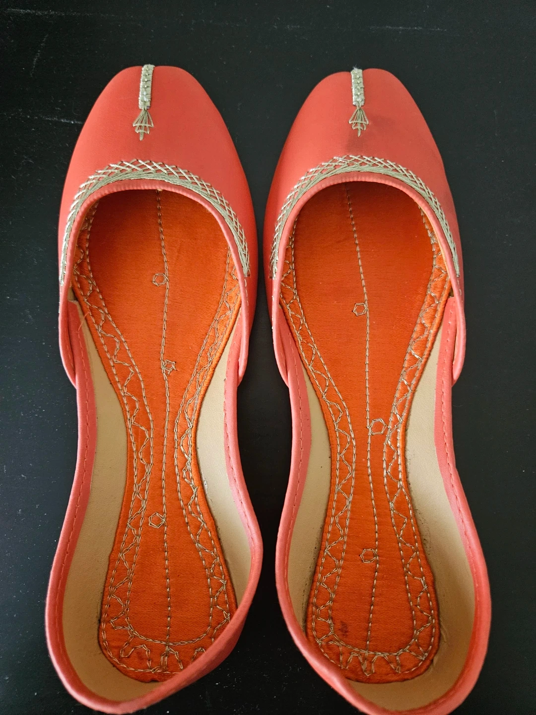 Selling a pair of beautiful new Jutti Khussa shoes. with shiny gold embroidery. traditional style flats. size 4. All new. Pickup location: Chinguacousy and Williams Parkway intersection in Brampton.