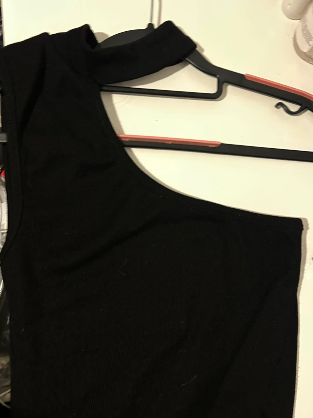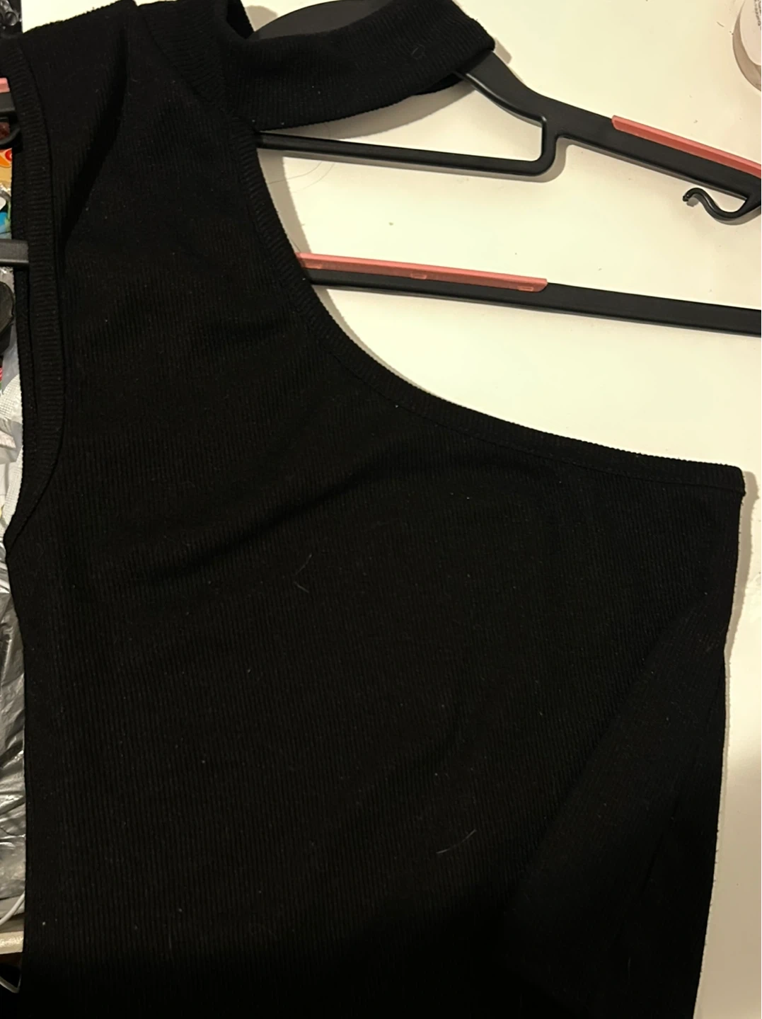 A stylish black one-shoulder top! It's in great condition and ready to wear. Perfect for a night out or a casual day.