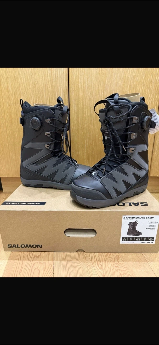 Brand New! Salomon X Approach Lace SJ BOA snowboard boots. Black and grey colourway. Includes original box. Men’s US 8