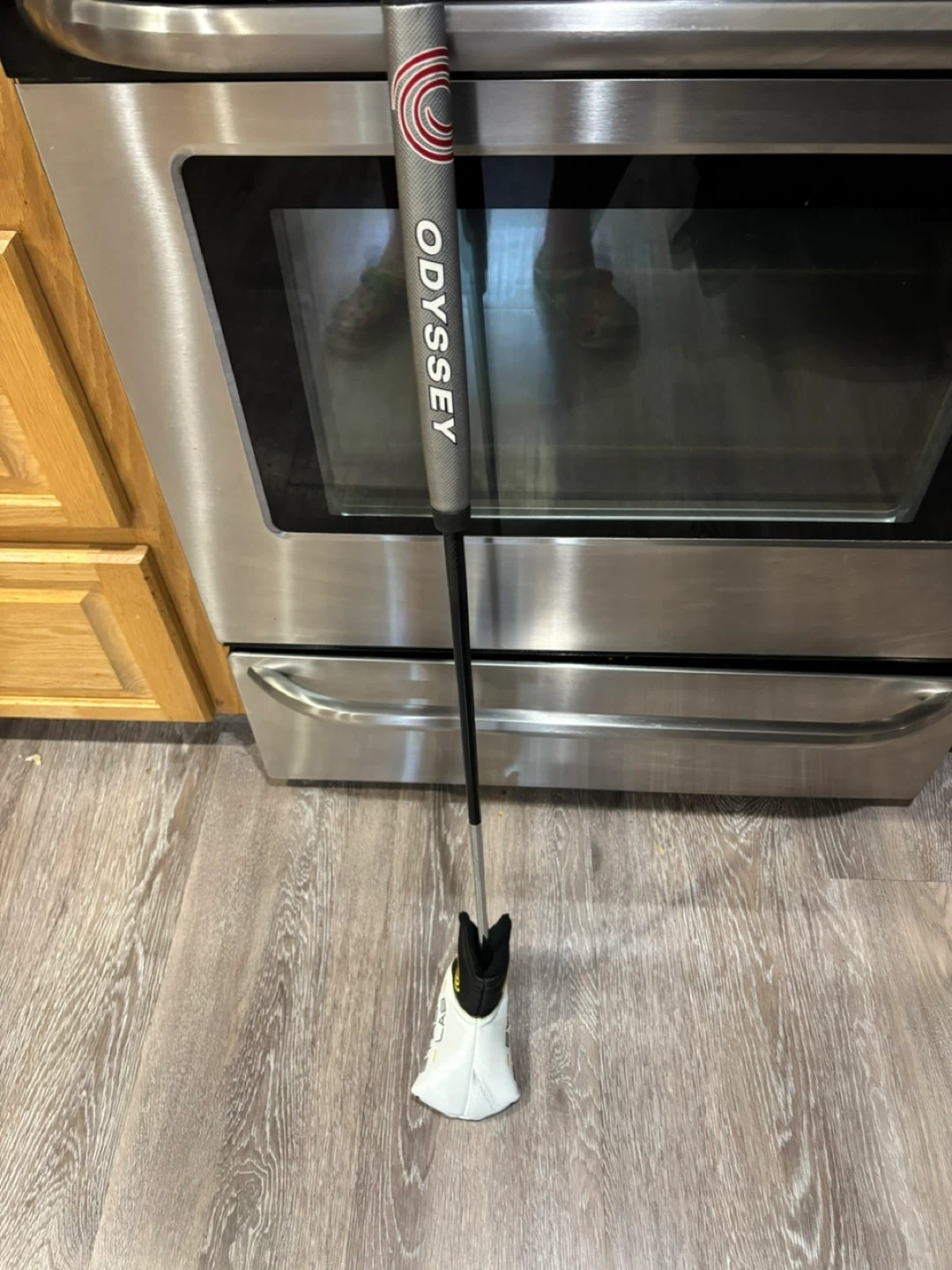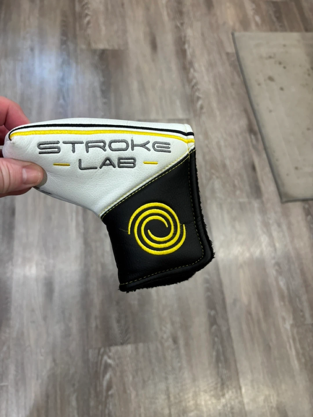 Odyssey Stroke Lab putter with a white headcover. It's designed for consistent putting strokes. This putter is great for golfers looking to improve their game on the greens. Head has totally been refinished. 34”