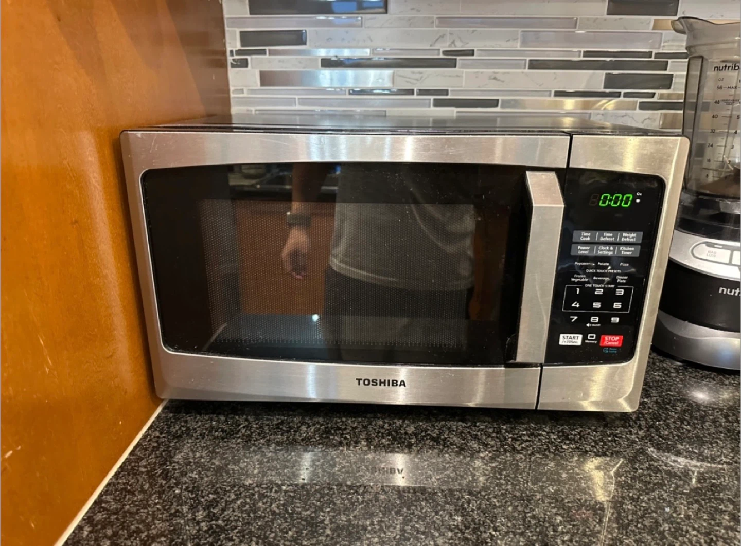 TOSHIBA ML-EM25P(SS)/CA Microwave Oven with Sound On/Off ECO Mode and LED Lighting, 0.9 Cu Ft/900W, Stainless Steel