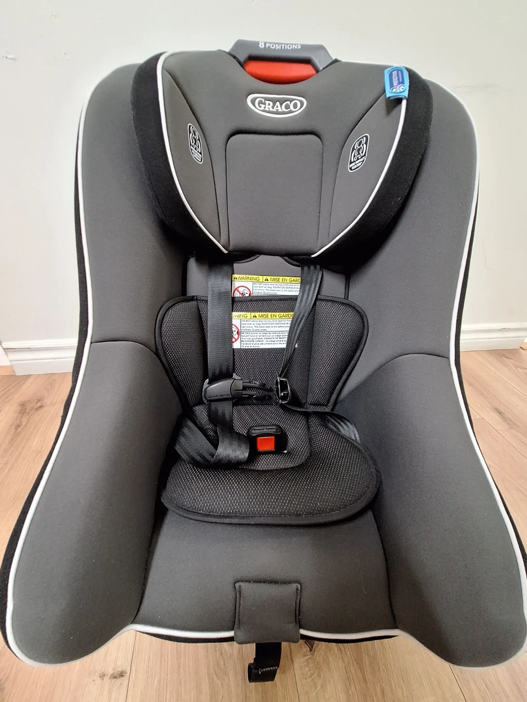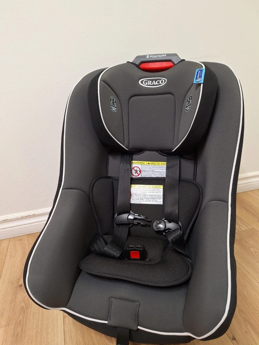 This Graco Contender 65 convertible car seat is designed for safety and comfort. It supports rear-facing from 5-35 lbs and forward-facing from 22-65 lbs. It also offers 8 recline positions for your child's growing needs.