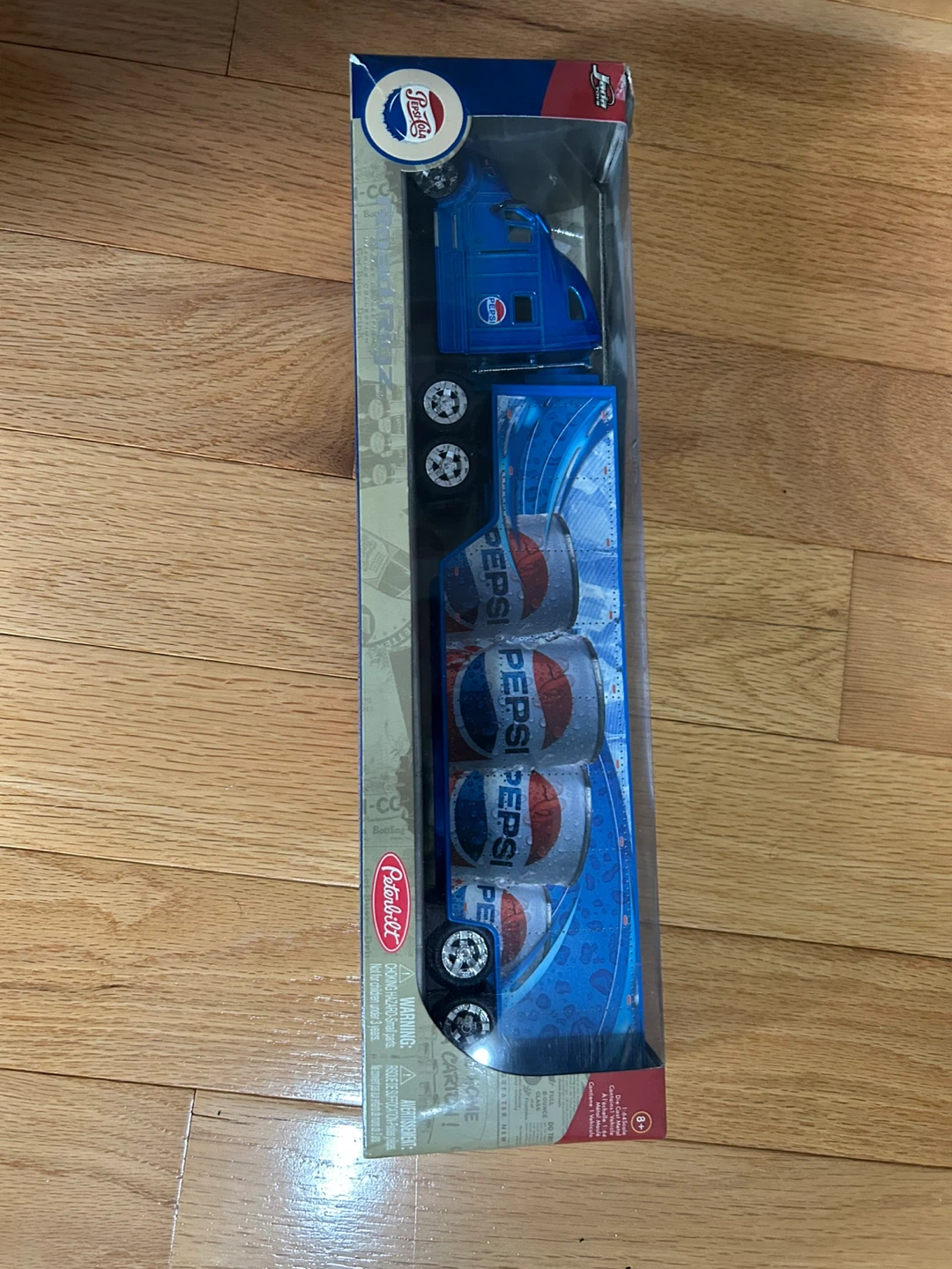 Selling a brand new Jada Toys Pepsi Road Rigs truck! It's still in its original packaging. Has a little rip on the side of box and on top. Perfect for collectors or as a gift for a young truck enthusiast. The box is included!