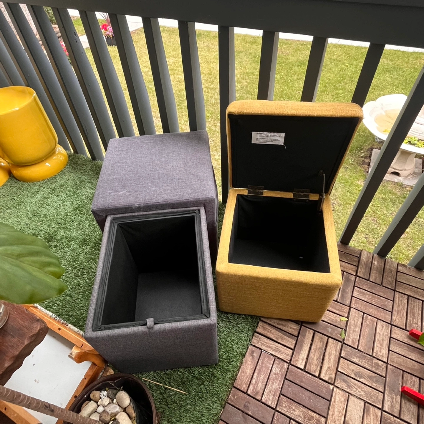 Buy & SellStorage Ottoman - Yellow and GreyStorage Ottoman - Yellow and Grey$25$25 each Some stain on top, washable. Pet smoke free houseConditionGoodWHERE TO MEETCheck LocationView MapSELLERverifiedAmethystKensington1103 reviews0 chats·2 favorites·67 viewsSEND CHAT TO SELLERHi Amethyst! I’m interested in your listing.Hi Amethyst! I’m interested in your listing.Get the Karrot app to chatSign In to chat