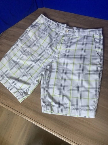 Experience comfort and style on the green with the Haggar C18 Men's Golf Shorts in size 34. These regular fit shorts are designed for the golf enthusiast, combining functionality and a classic look. The crisp white, black, grey, and green shock color palette offers versatile pairing with your favorite golf shirts and shoes. Crafted for movement and breathability, these shorts are ideal for those warm days on the course. The renowned Haggar brand ensures quality and durability, making them a staple in any golfer's wardrobe. Equipped with convenient features like side seam pockets, these shorts are as practical as they are stylish.