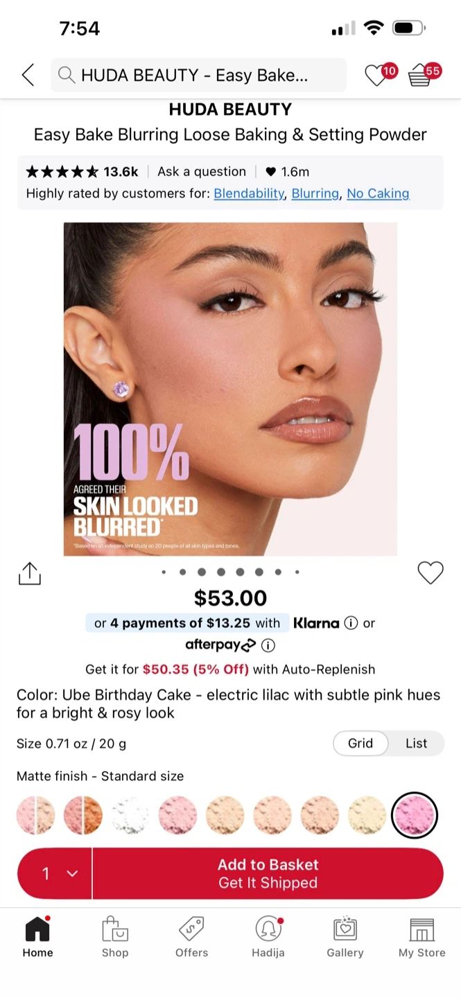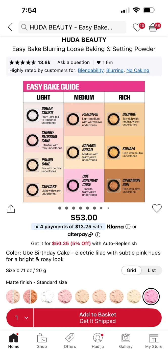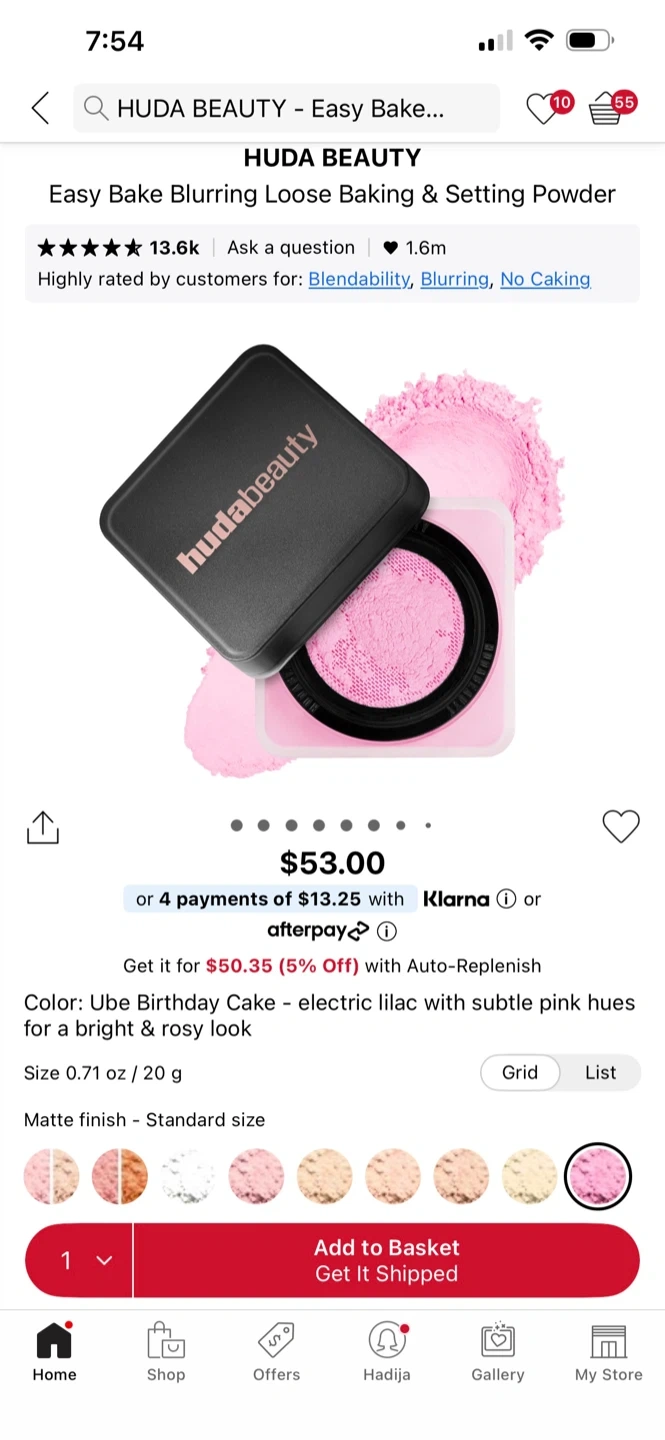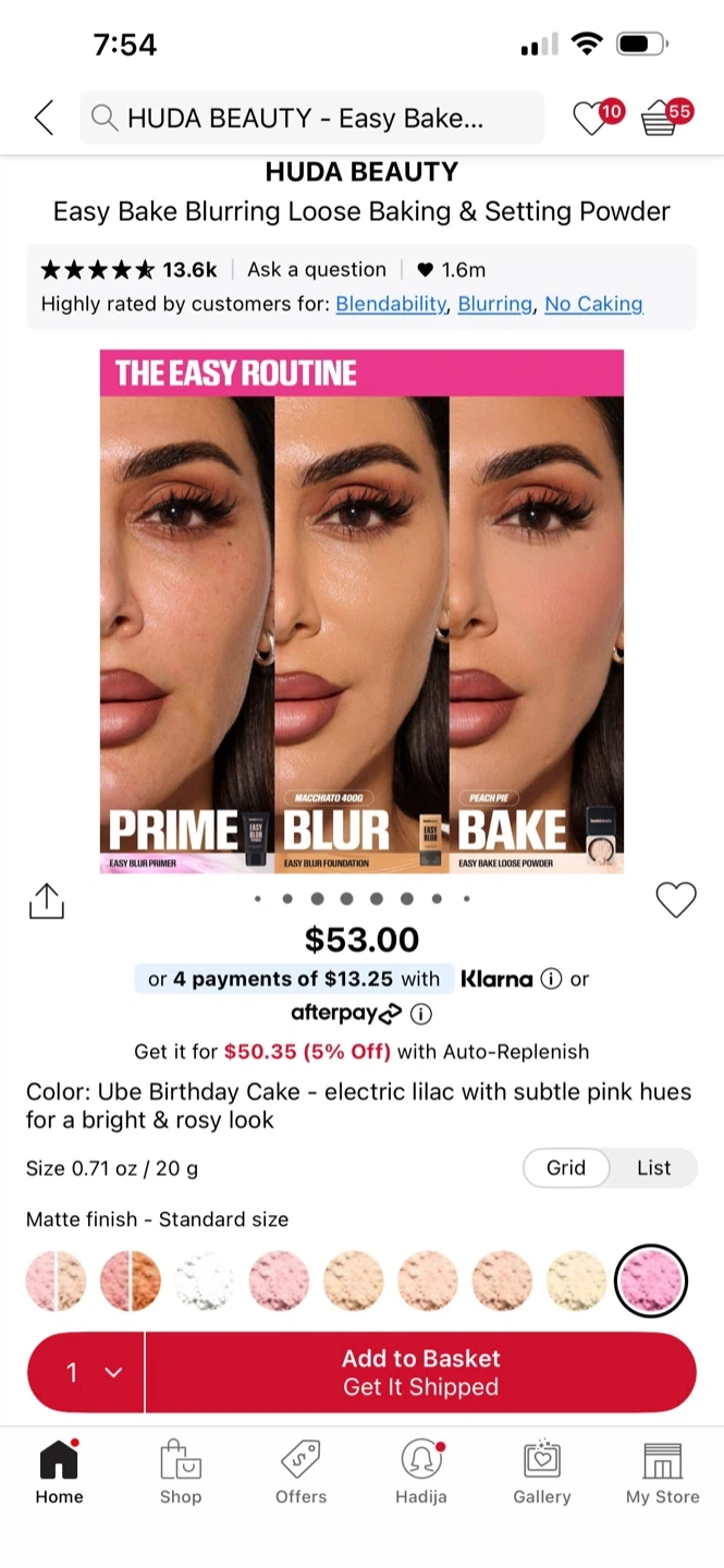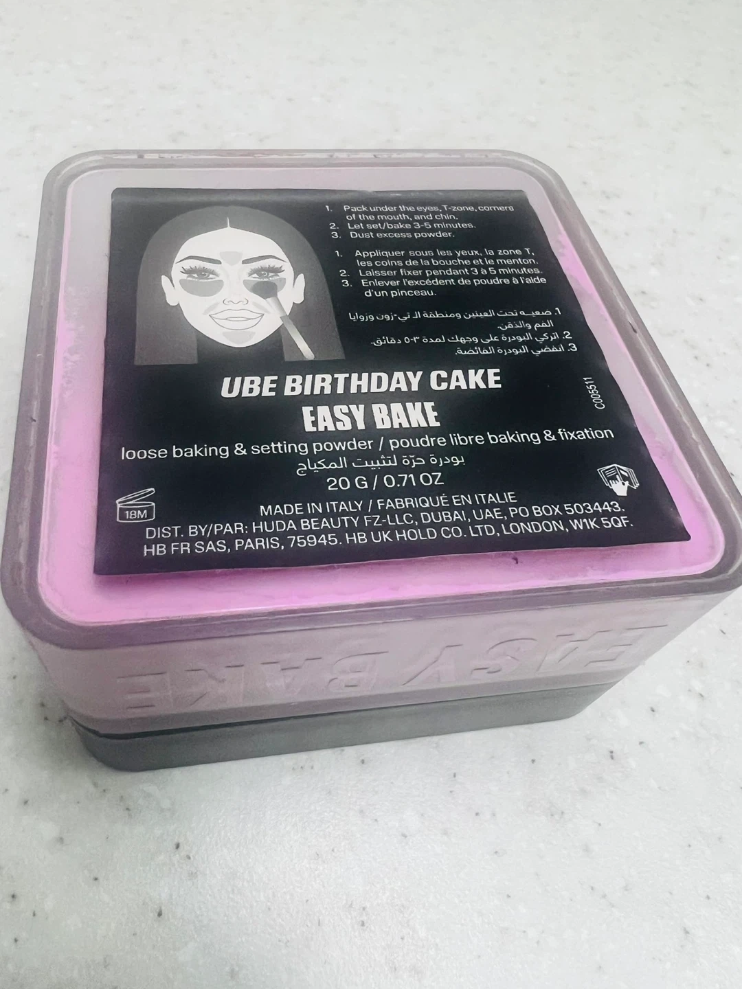 Huda Beauty Easy Bake Loose Baking & Setting Powder, shade Ube Birthday Cake. It's lilac shade. The filter powder has matte finish, It's perfect for setting makeup for a bright & rosy look! Pick up cash only.