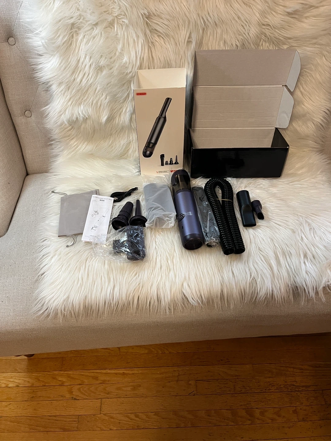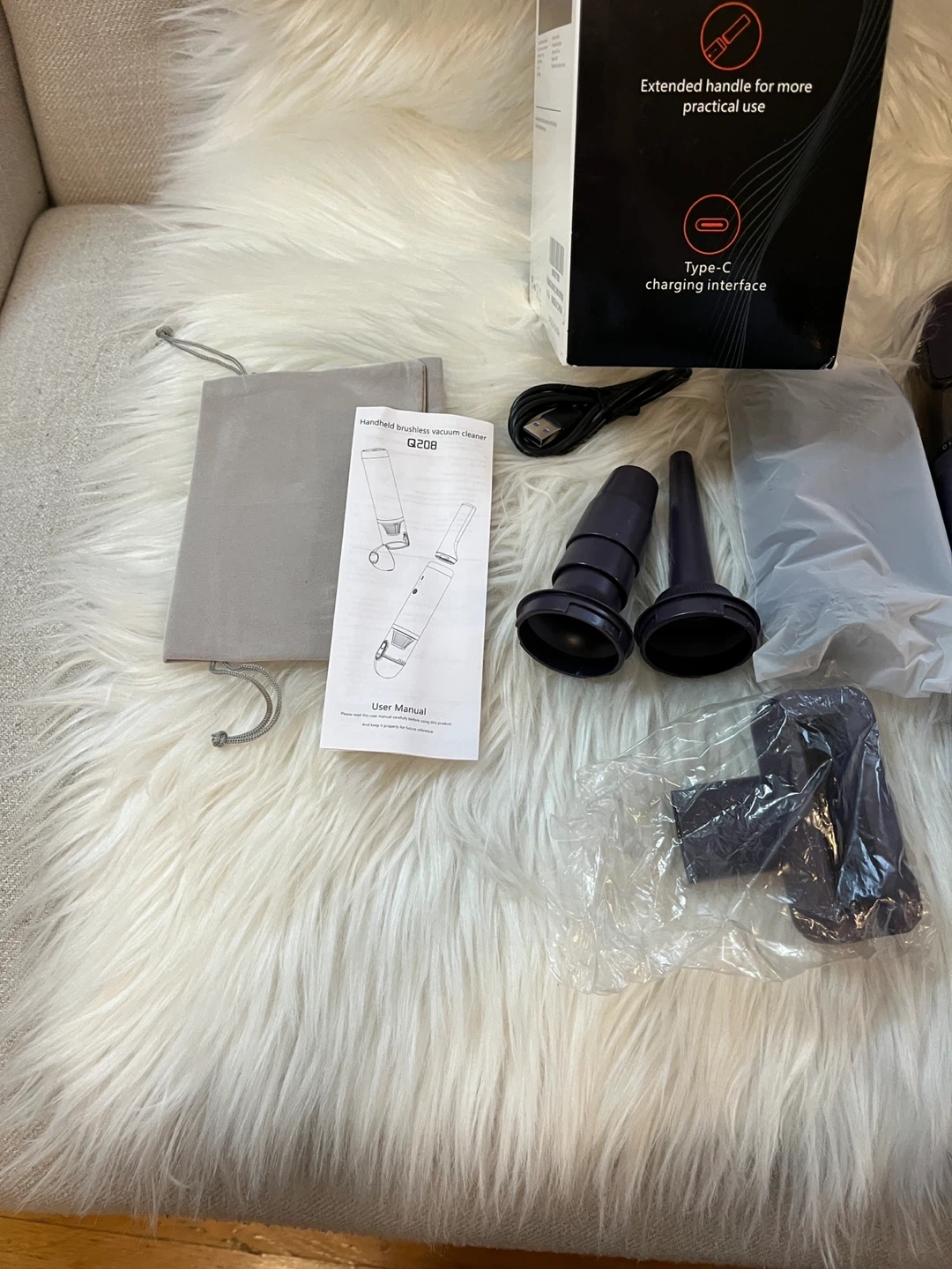 Selling a brand new, in-box handheld brushless vacuum cleaner, model Q208! It comes with all the accessories, including the user manual, various nozzle attachments, and a Type-C charging interface. The vacuum features a super suction of 16000pa and has a vacuum suction/inflation multi-functional use. The extended handle makes it practical to use!