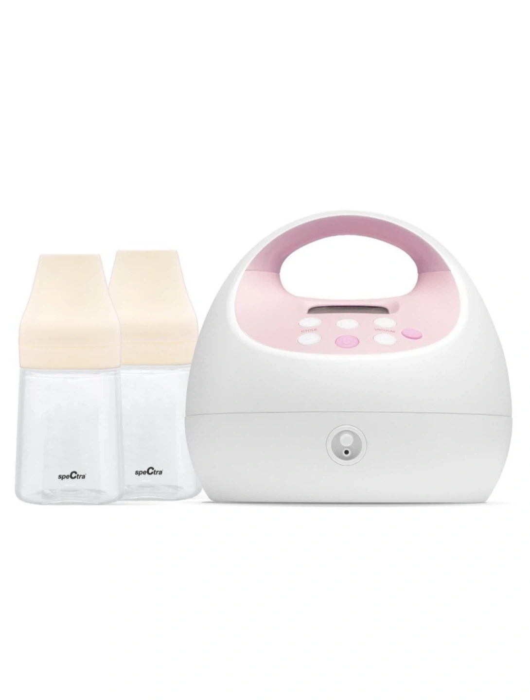 Spectra S2 PLUS Premier Electric Breast Pump with Natural Nursing Technology. Includes two bottles. This pump offers a closed system for hygienic milk collection. It's designed for efficient and comfortable milk expression.