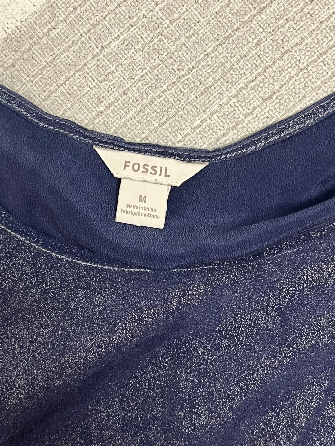 Selling a Fossil top in size medium! It's a lovely blue colour with a subtle shimmer. Perfect for dressing up or down!