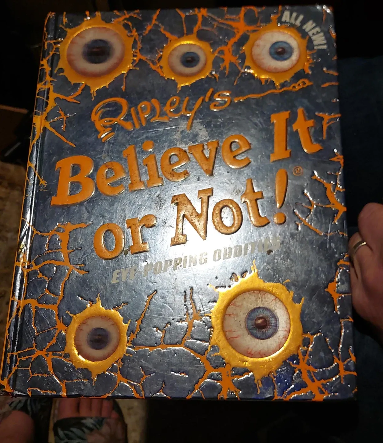 This is Ripley's Believe It or Not! Eye-Popping Oddities book. It's filled with strange and unusual facts. A great read for anyone who loves the bizarre!