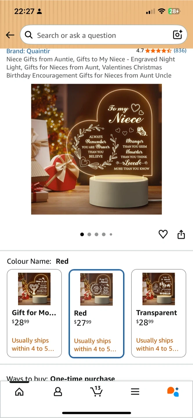Quaintir Niece Heart Night Light