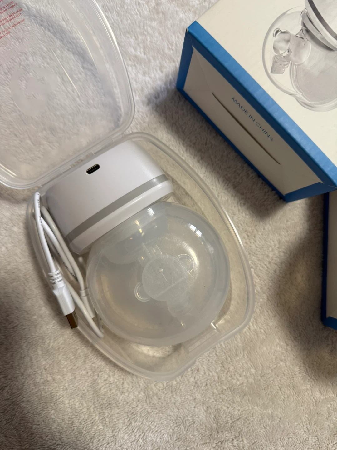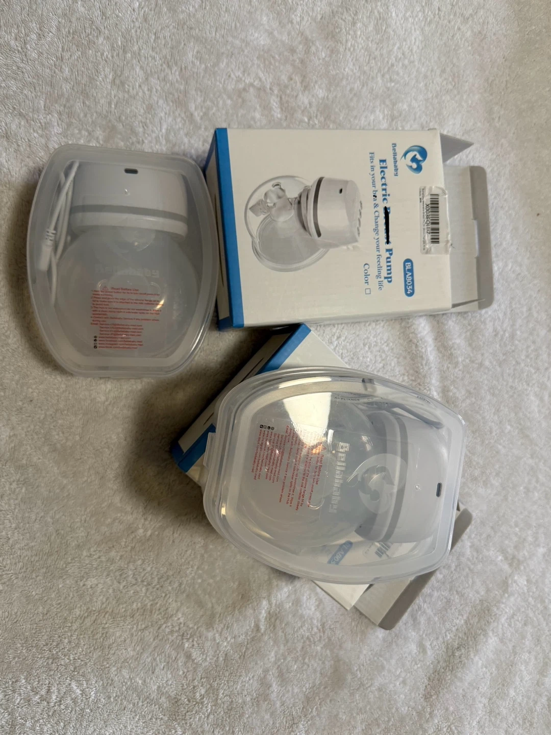 Bellababy Electric Breast Pump, model BLA8034. This pump is rechargeable and comes with a USB charging cable. It's designed for efficient and comfortable milk expression. Includes original box and user manual.