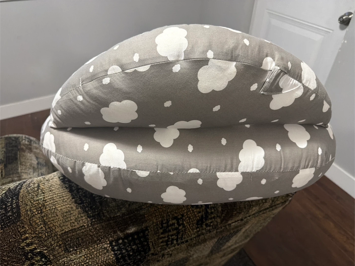 Nursing Pillow - Gray with White Clouds