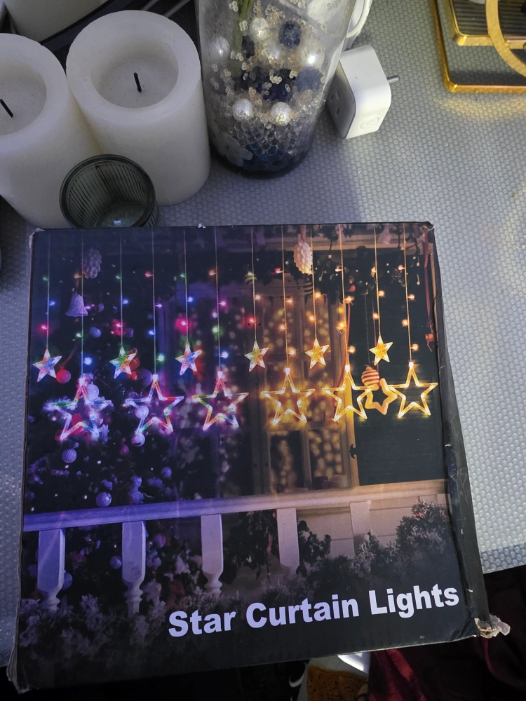 Selling a set of star curtain lights, brand new in the box! These lights are perfect for adding a cozy and festive touch to any room. They're lightweight and easy to hang. Comes with all original components and instructions. Box included!