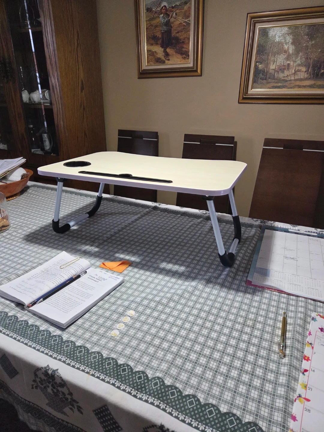 This portable tray table is great for working on your laptop in bed or on the couch. It's lightweight and has a convenient cup holder, pen slot and small drawer underneath. The foldable legs make it easy to store. Perfect for students, the elderly who stays at home or travels.