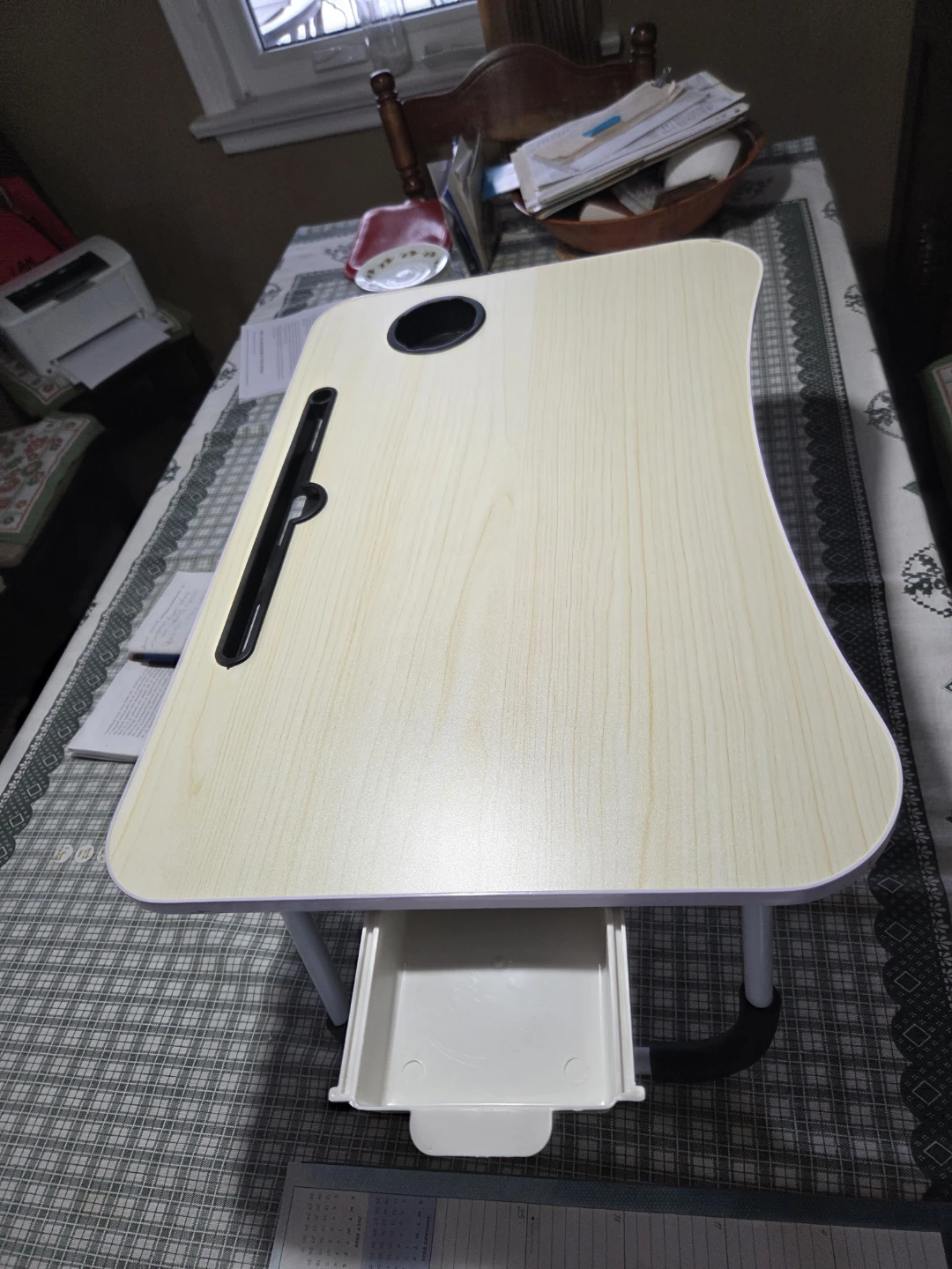 This portable tray table is great for working on your laptop in bed or on the couch. It's lightweight and has a convenient cup holder, pen slot and small drawer underneath. The foldable legs make it easy to store. Perfect for students, the elderly who stays at home or travels.