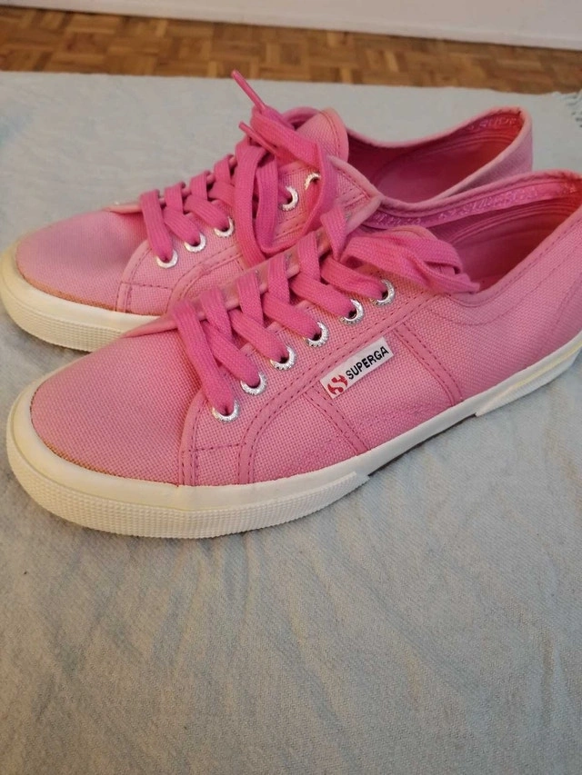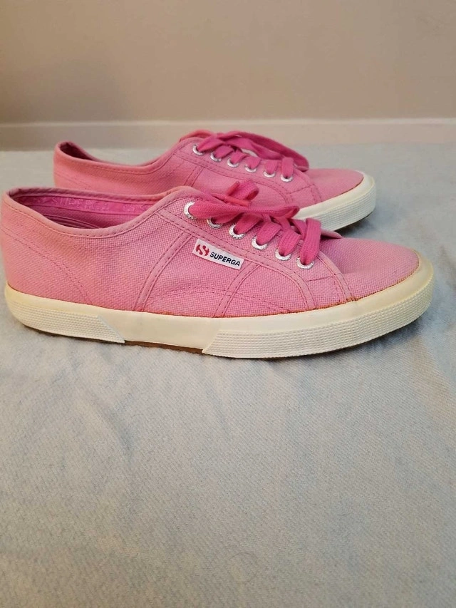 Step out in style with these gently used Superga pink canvas sneakers, perfect for adding a pop of colour to your casual outfits! In good condition, these sneakers are a women's size 10 (US 7.5 / EU 41.5) and offer both comfort and a trendy look. Brand: Superga. Style: S002610. Upper: Canvas. Lining: Canvas. Outsole: Rubber. If the ad is up, they're available!