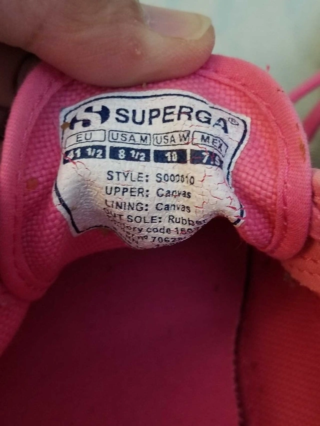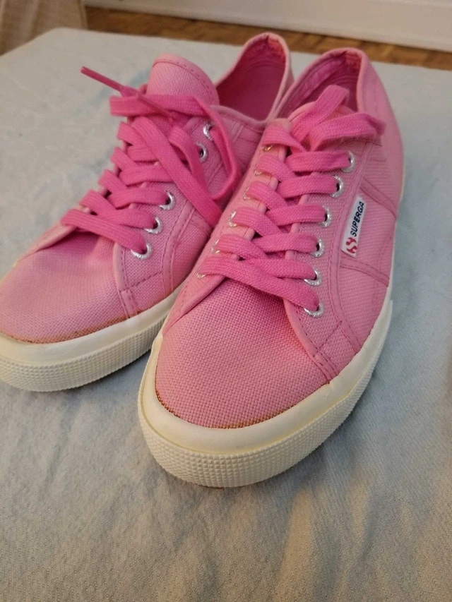 Step out in style with these gently used Superga pink canvas sneakers, perfect for adding a pop of colour to your casual outfits! In good condition, these sneakers are a women's size 10 (US 7.5 / EU 41.5) and offer both comfort and a trendy look. Brand: Superga. Style: S002610. Upper: Canvas. Lining: Canvas. Outsole: Rubber. If the ad is up, they're available!