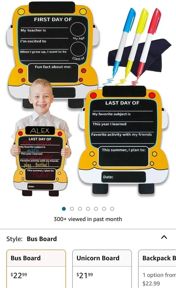 Buy & Sell(New) First and Last Day of School Board(New) First and Last Day of School Board$7- Sealed Brand New -3 choice :bus /unicorn /backpack boardWHERE TO MEETCheck LocationView MapSELLERverifiedChristineClinton Hill2209 reviews0 chats·1 favorites·4 viewsSEND CHAT TO SELLERHi Christine! I’m interested in your listing.Hi Christine! I’m interested in your listing.Get the Karrot app to chatSign In to chat