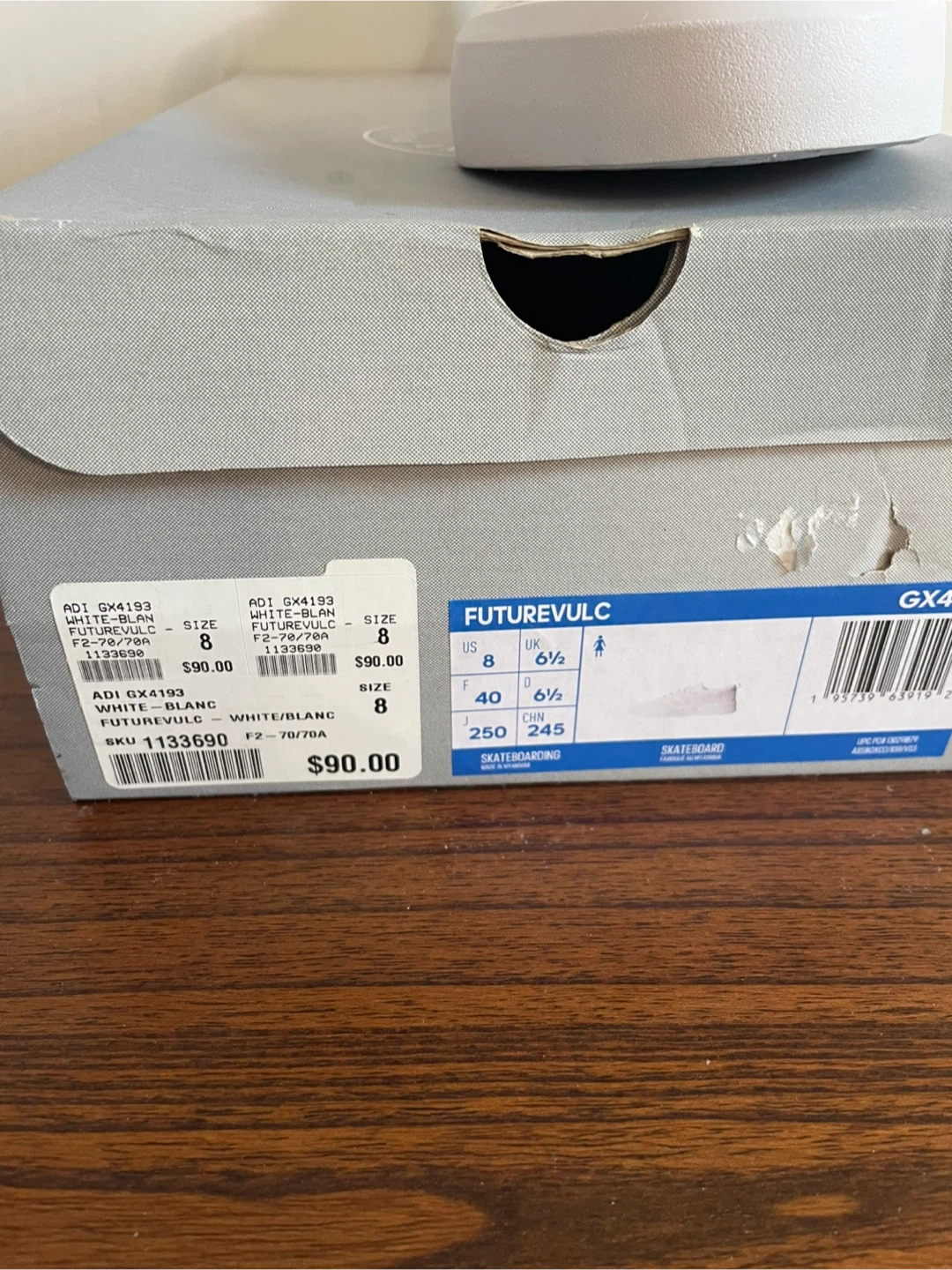 *The shoe box has some markings