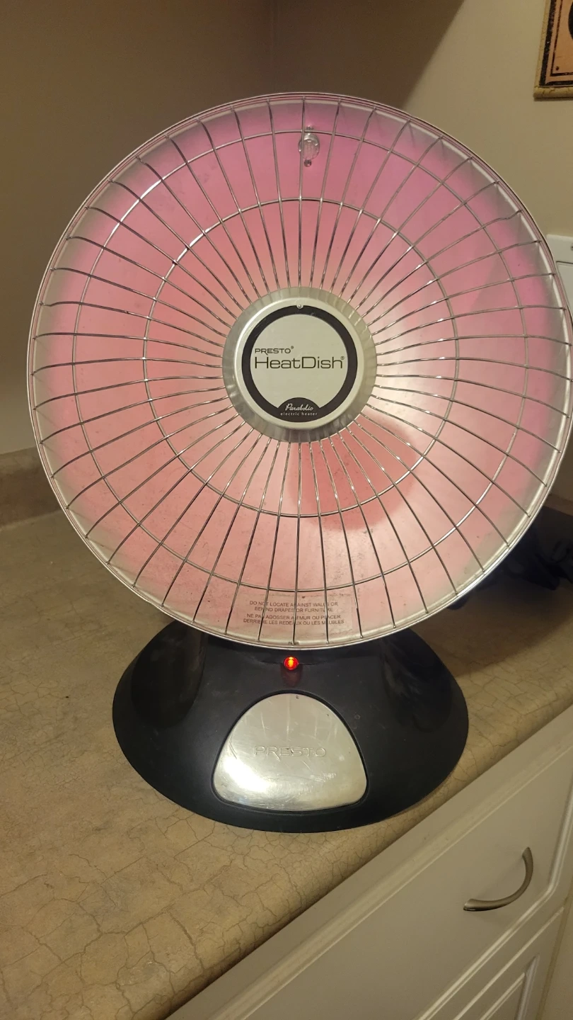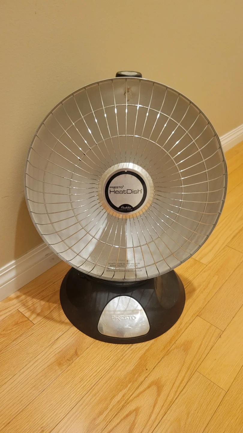 Presto, the best heat dish brand. Its parabolic reflector focuses heat output, like a satellite dish concentrates TV signals, so it requires less energy than convection electric heaters to deliver all the warmth you'll want. It provides super concentrated heat to keep you much warmer than 1500 watt convection heaters. It costs a third less to operate and has helped us save money on our electric bills.